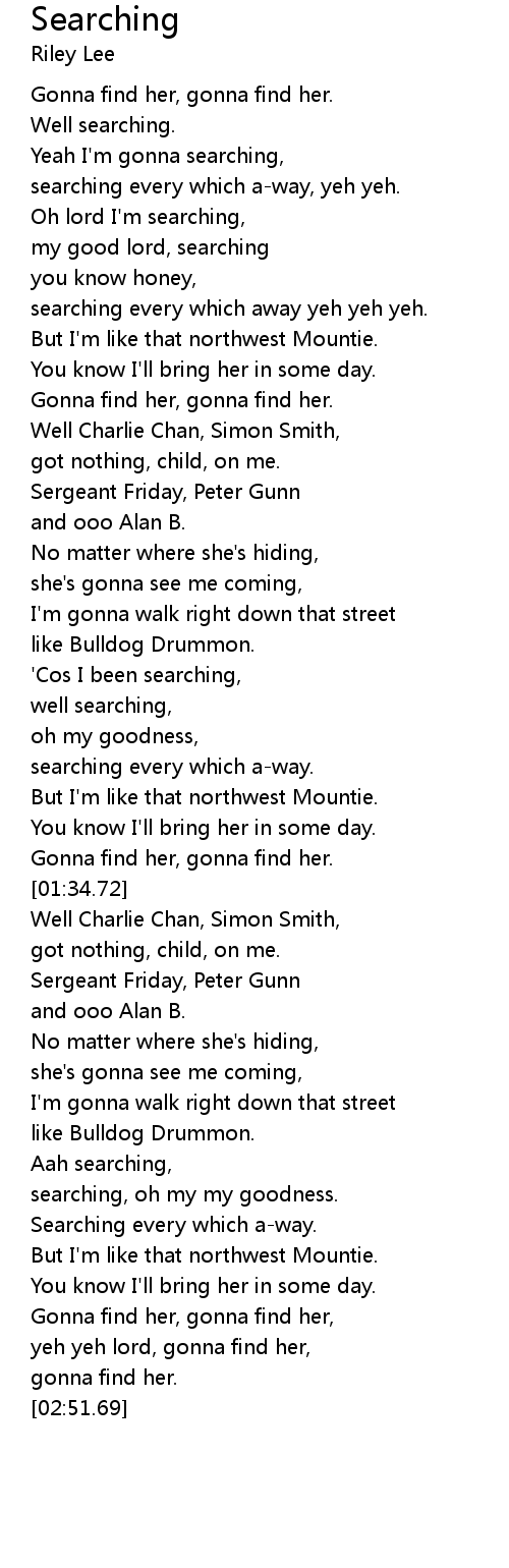 | [00:11.86] | searching every which a-way, yeh yeh. |