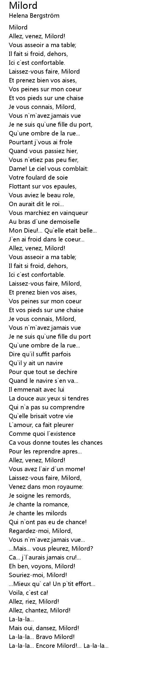 La-la-la... Encore Milord!... La-la-la... |