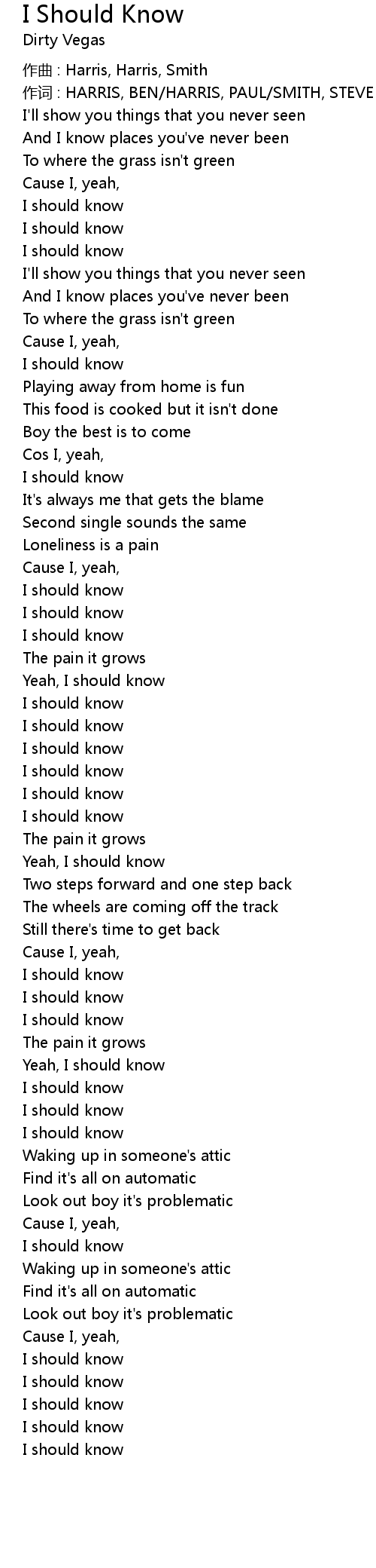 | 歌曲 | I Should Know |