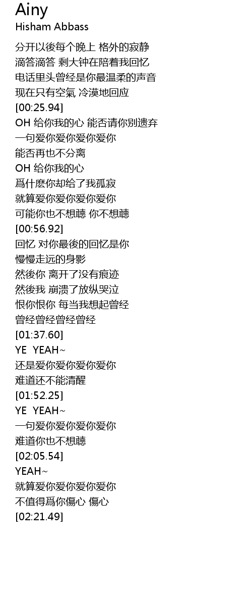 | [01:59.43] | yi ju ai ni ai ni ai ni ai ni |