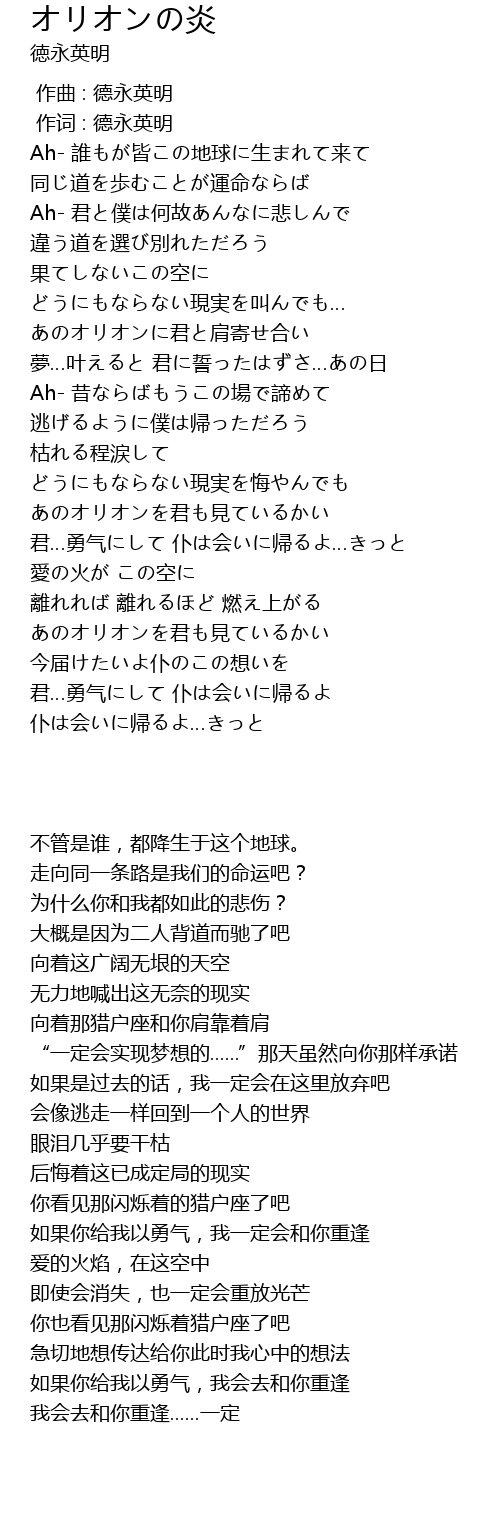 | [04:00.65] | あのオリオンを君も見ているかい |