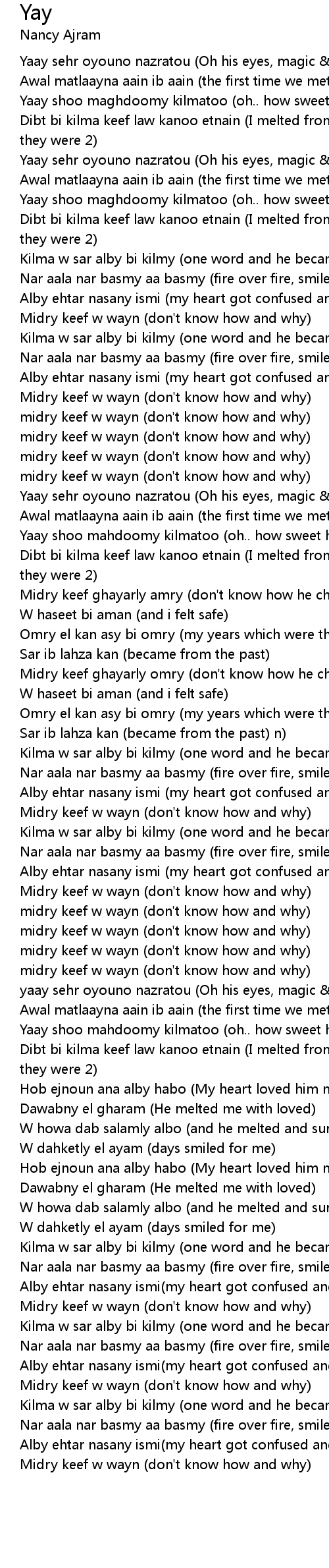 Alby ehtar nasany ismi (my heart got confused and I forgot my name)