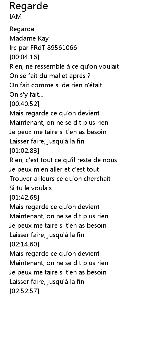 | [00:41.66] | Mais regarde ce qu'on devient |