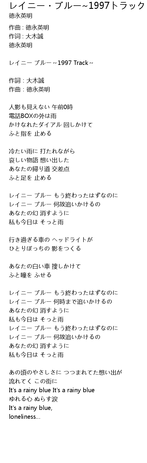 | 歌曲 | レイニー・ブルー~1997トラック |