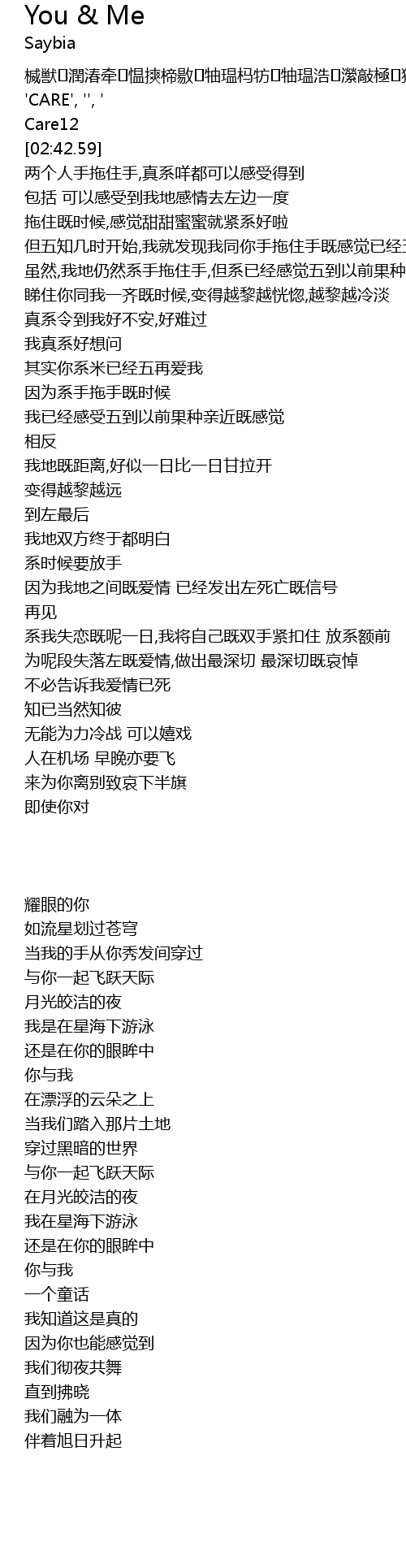 | [02:13.490] | 你与我 |
