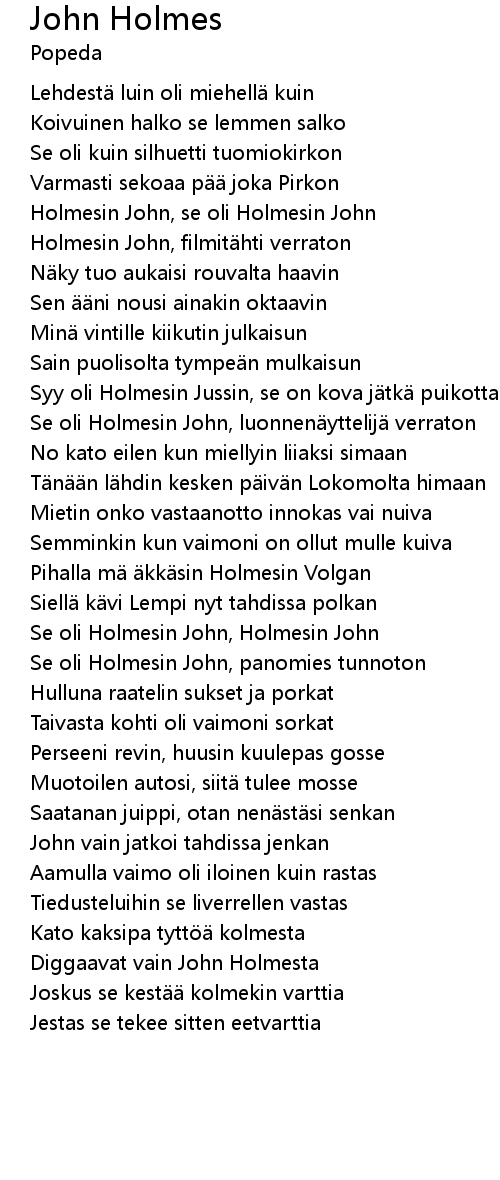 | Pihalla mä äkkäsin Holmesin Volgan | |