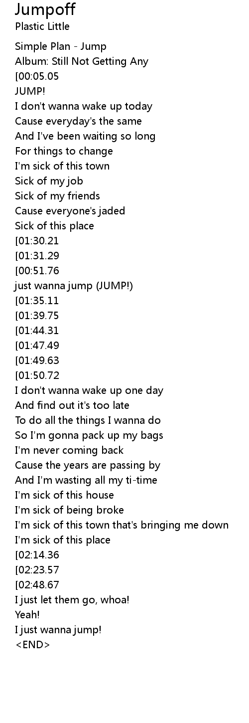 [01:00.72][01:50.72][01:55.56] I just wanna jump