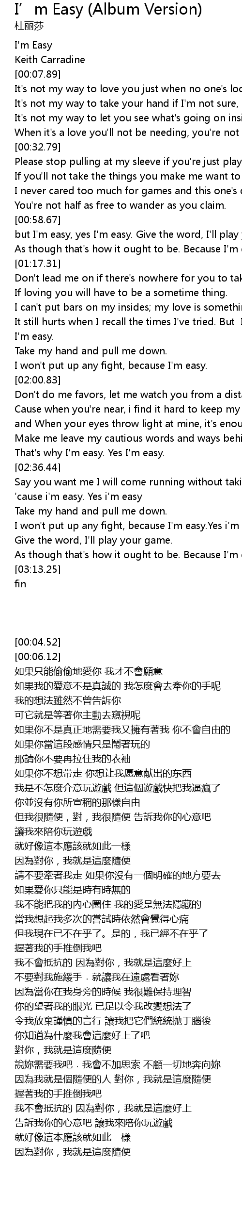 'cause i'm easy. Yes i'm easy |