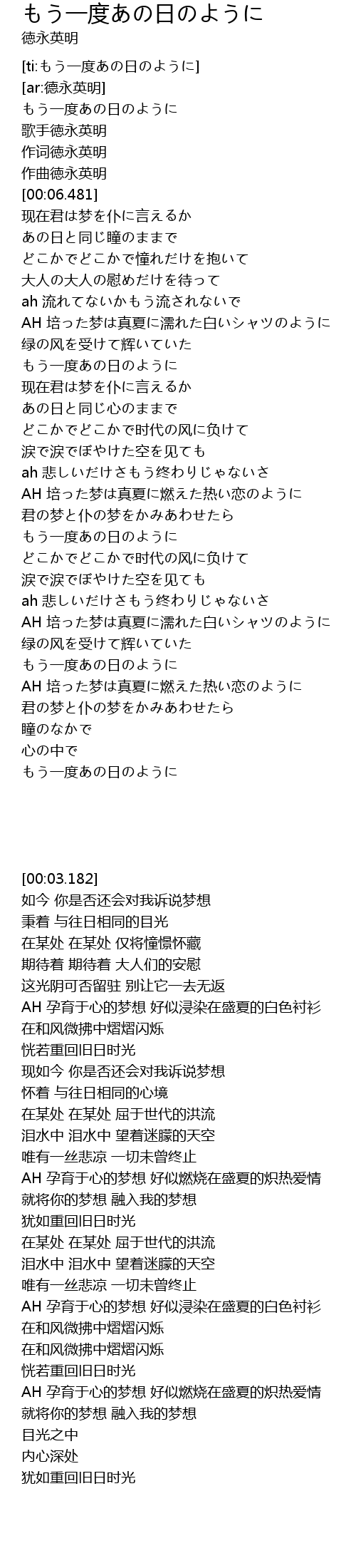 | [ti:もう一度あの日のように] | |