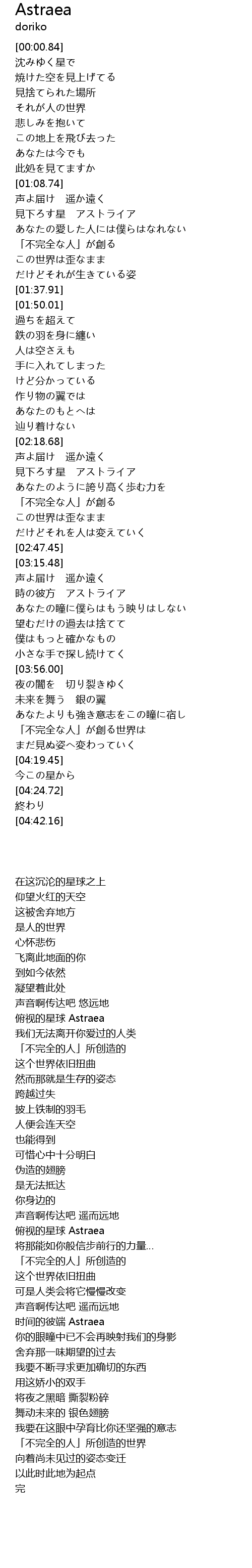 | [02:22.34] | 俯视的星球 Astraea |