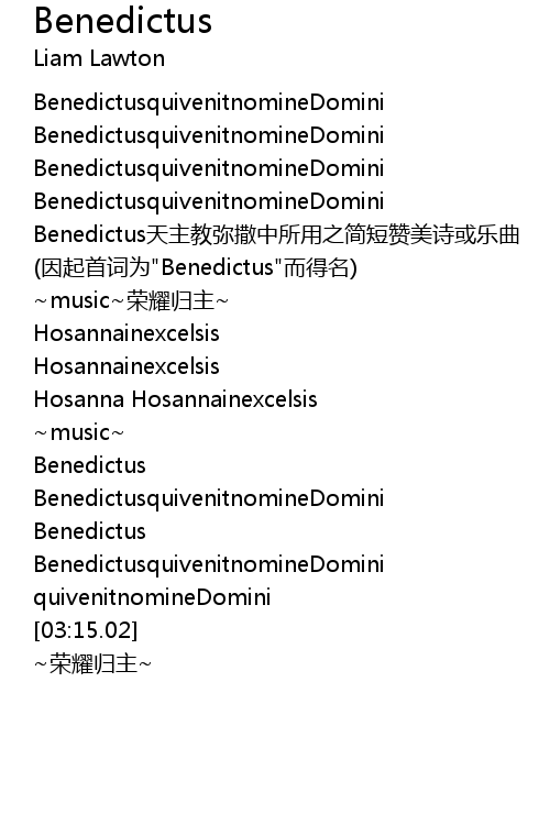 | [01:36.05] | (因起首词为"Benedictus"而得名) |