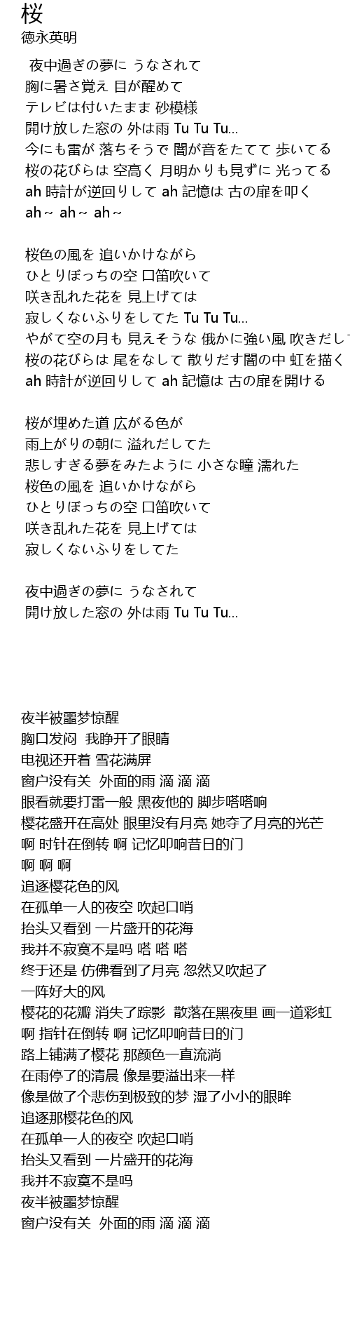 | 桜の花びらは 空高く 月明かりも見ずに 光ってる | |
