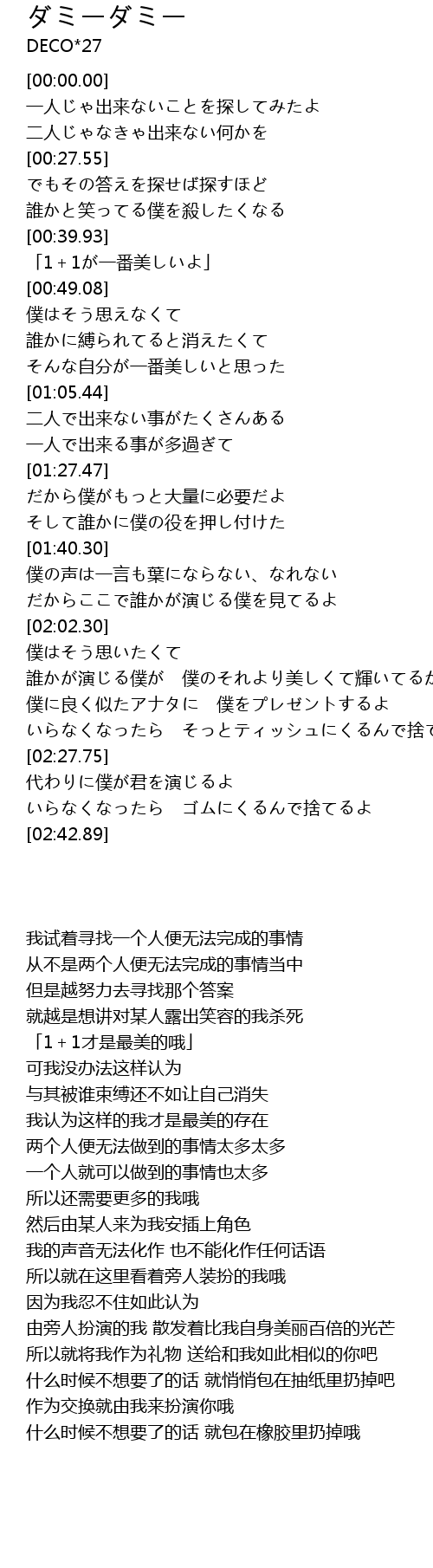 | [00:40.70] | 「1+1が一番美しいよ」 |