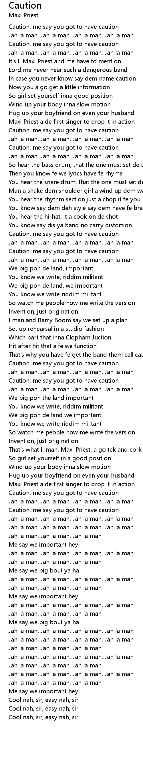 Caution, me say you got to have caution |