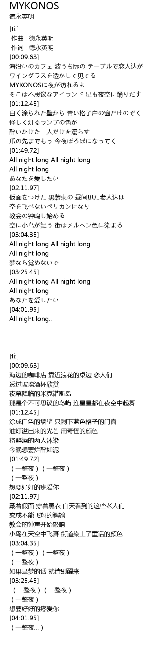 | [00:52.05] | MYKONOSに夜が访れるよ |