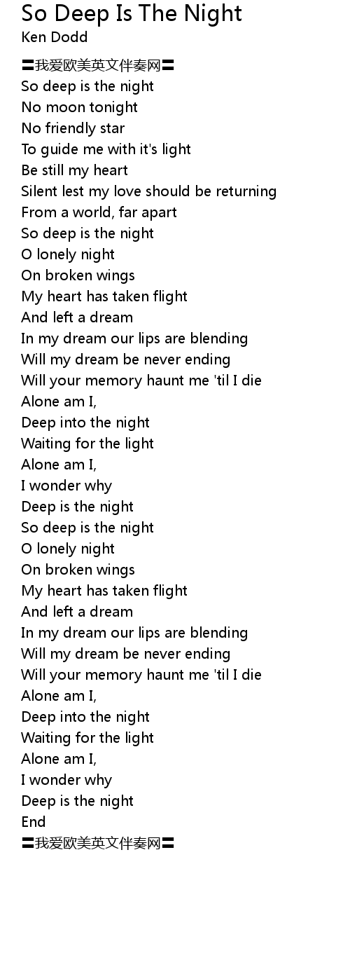 | [00:16.88] | So deep is the night |