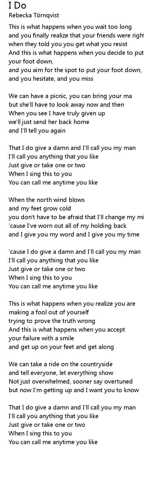 | ' cause I do give a damn and I' ll call you my man | |