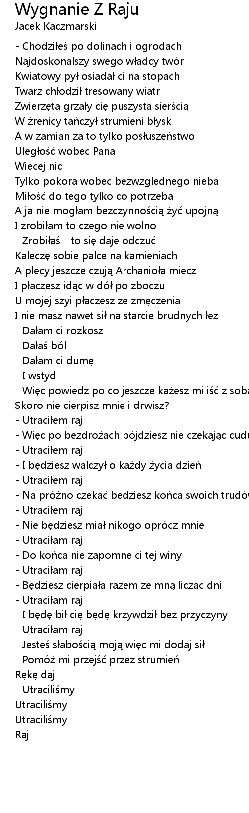 | 歌曲 | Wygnanie Z Raju |