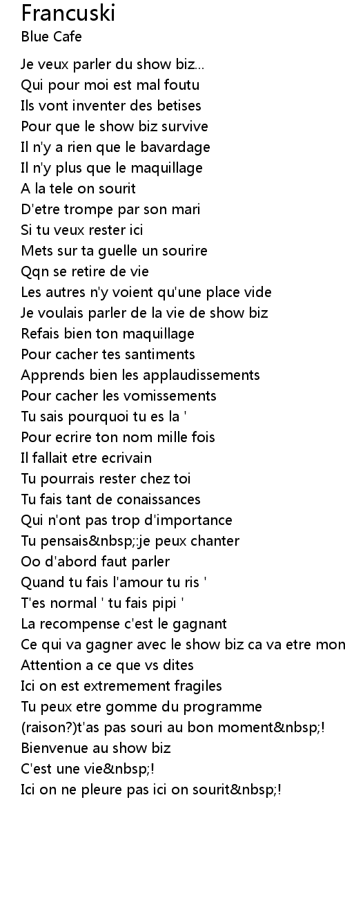| Je voulais parler de la vie de show biz | |