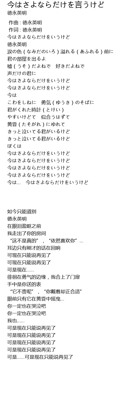 | [03:59.30] | 今は… 今はさよならだけをいうけど |
