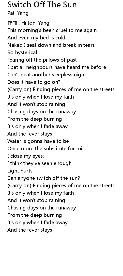| 歌曲 | Switch Off The Sun |