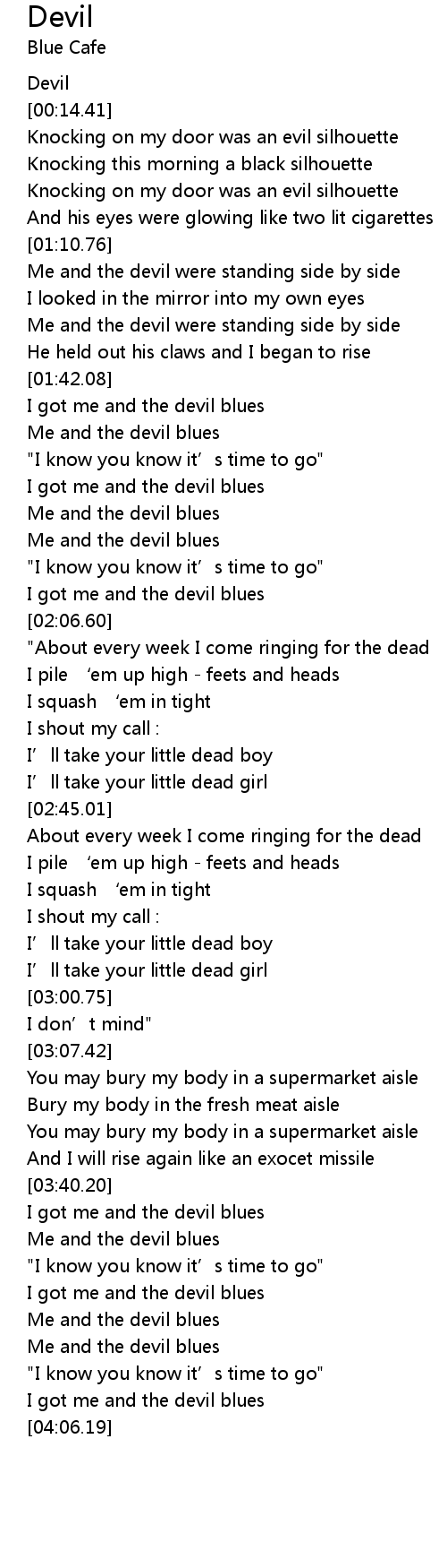 | [01:03.88] | And his eyes were glowing like two lit cigarettes |