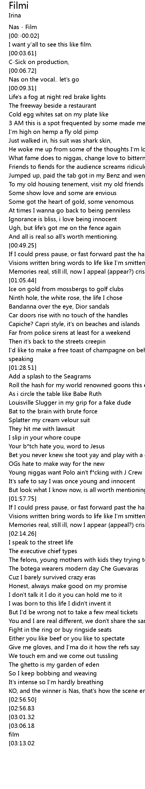 [03:25.80][03:06.18] Memories real, still ill, now I appeal (appear?) crisp like film