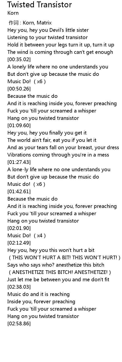| [00:00.00] | zuò cí : Korn, Matrix |