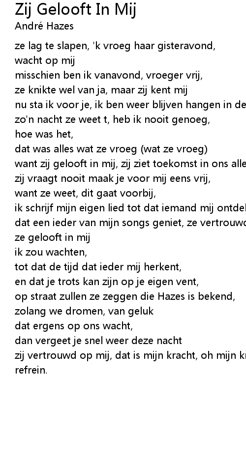 Zij Gelooft In Mij 歌词