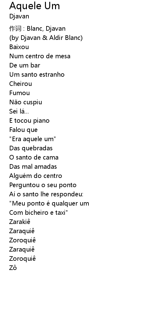 | zuò cí : Blanc, Djavan | |