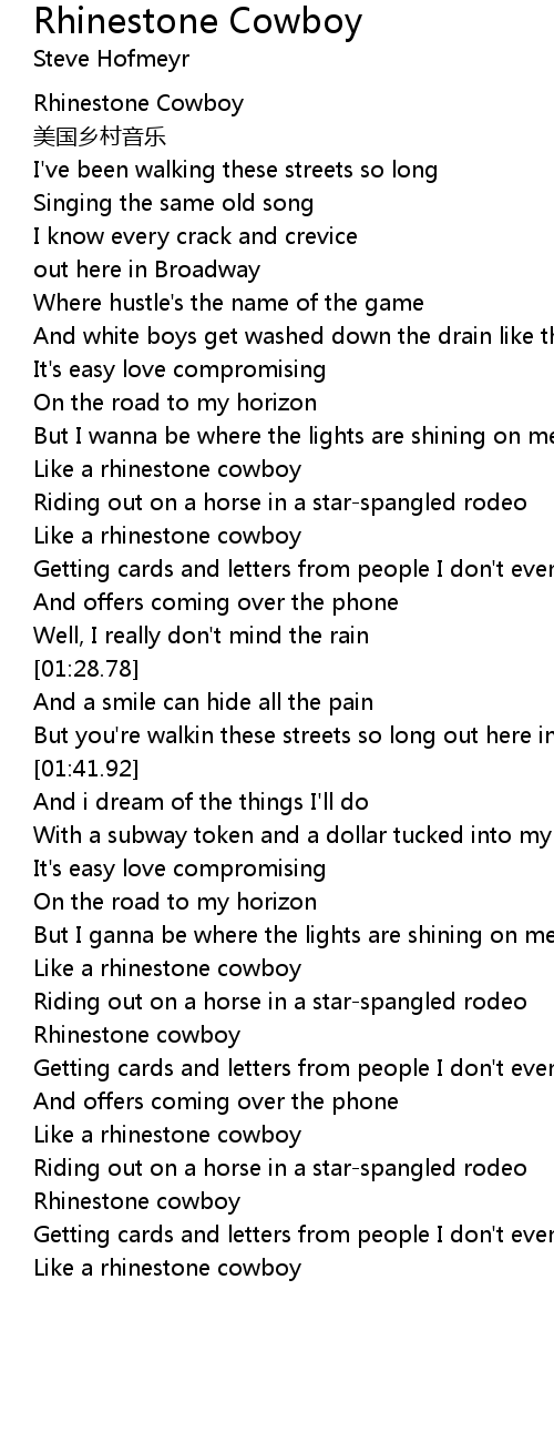 | [02:18.50] | Riding out on a horse in a starspangled rodeo |