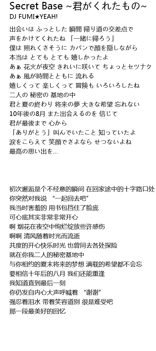 | 歌曲 | Secret Base ~君がくれたもの~ |
