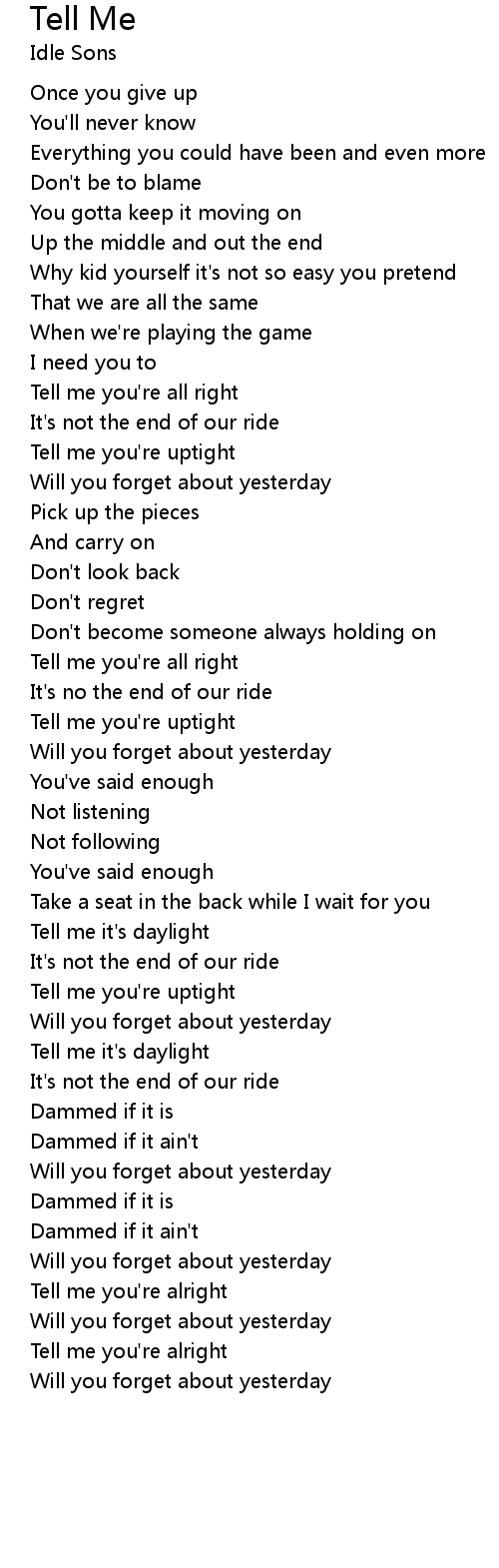 | Tell me you're alright | |