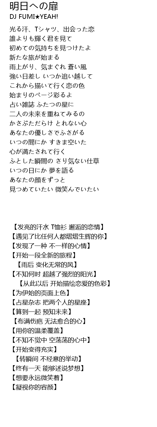 | 歌曲 | 明日への扉 |