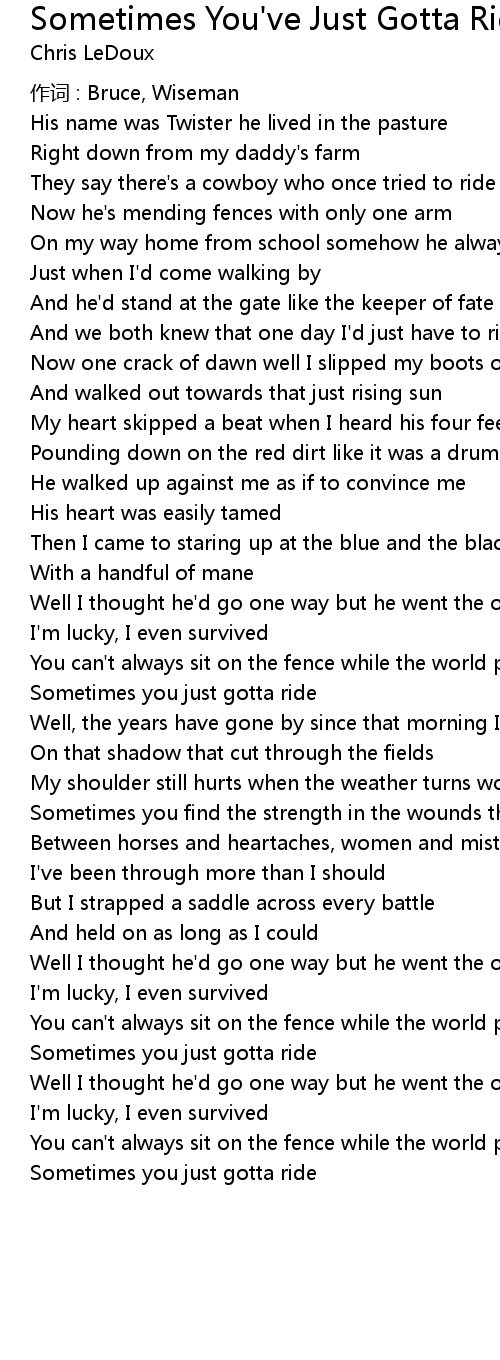 | 歌曲 | Sometimes You've Just Gotta Ride |