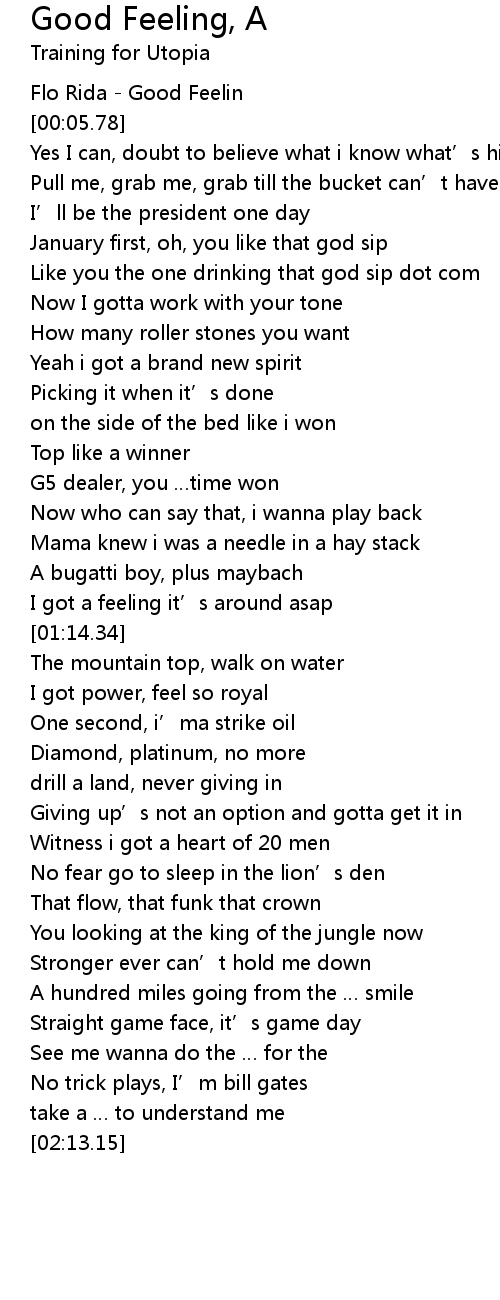 | [00:00.34] | Flo Rida Good Feelin |