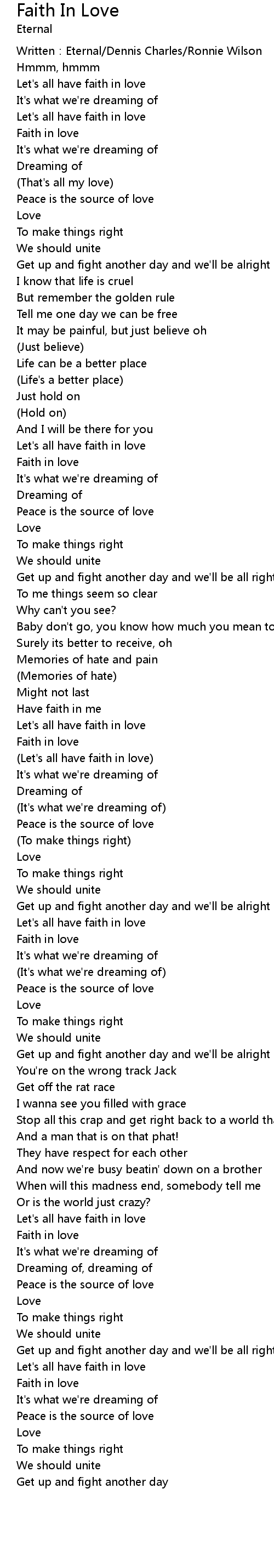 | (Let's all have faith in love) | |