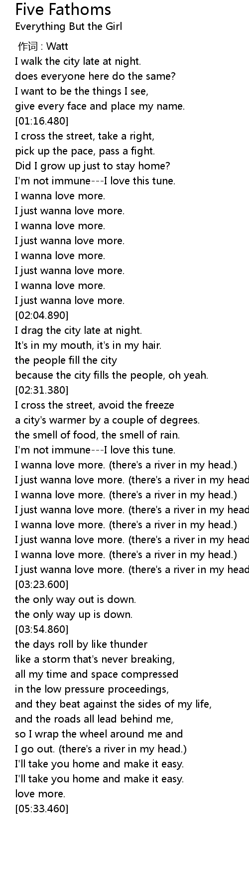 | [02:56.790] | I just wanna love more. there' s a river in my head. |