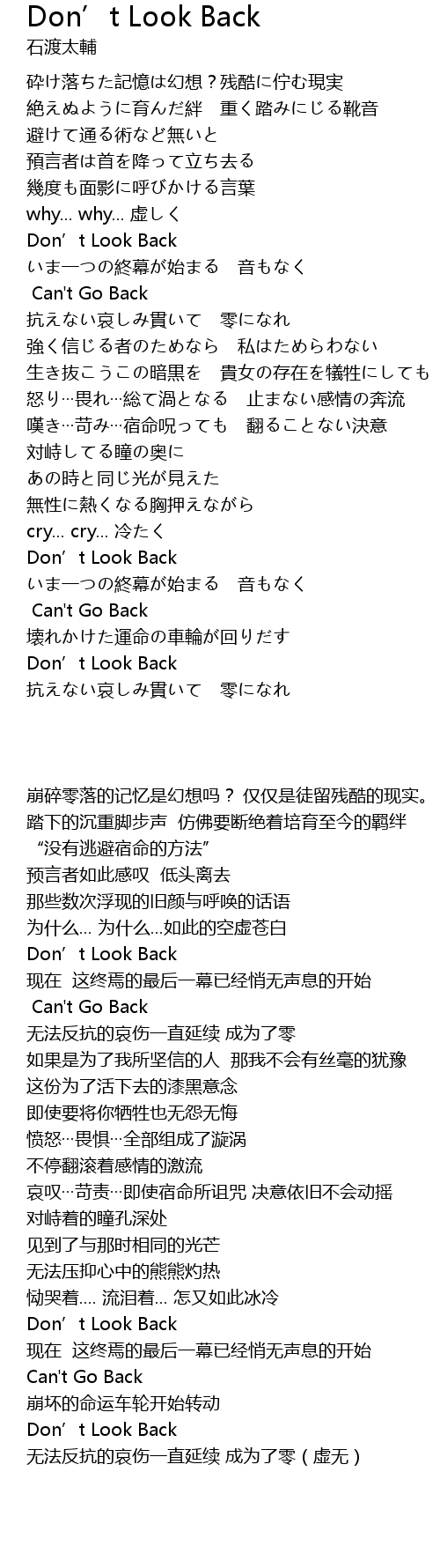 | 歌曲 | Don’t Look Back |