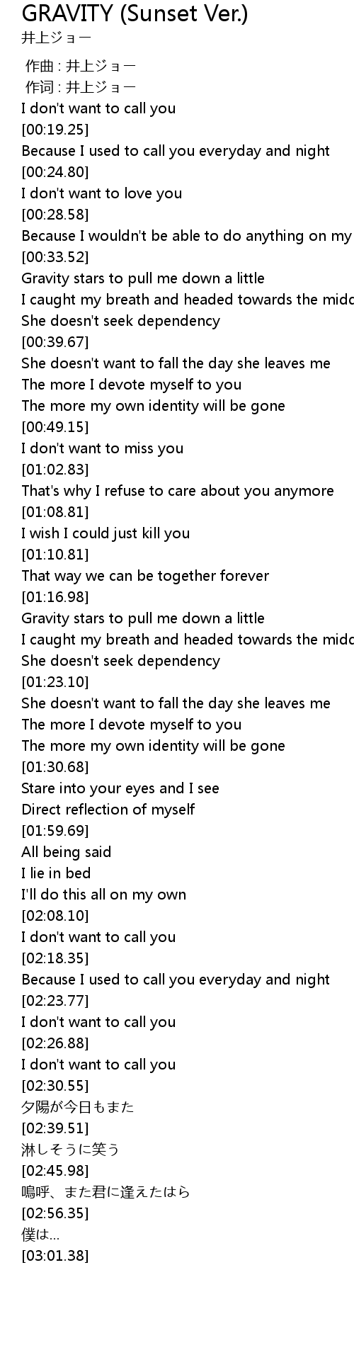 | [00:34.95] | Gravity stars to pull me down a little |