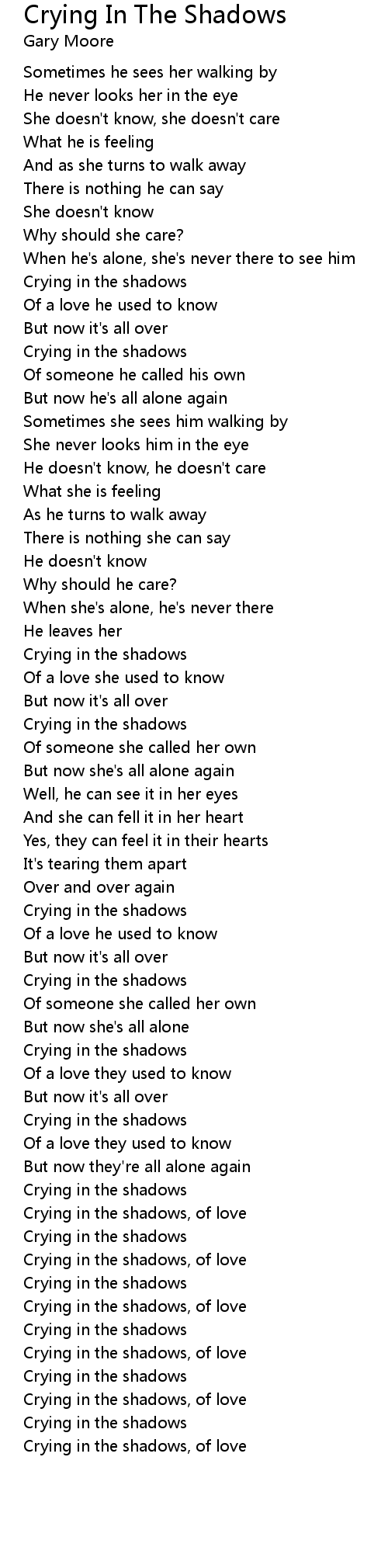 Crying in the shadows, of love |