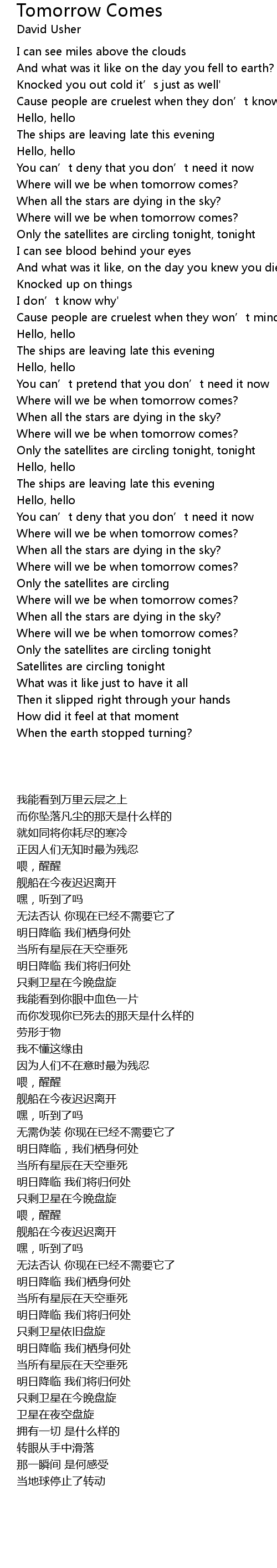 | [01:48.000] | Where will we be when tomorrow comes? |
