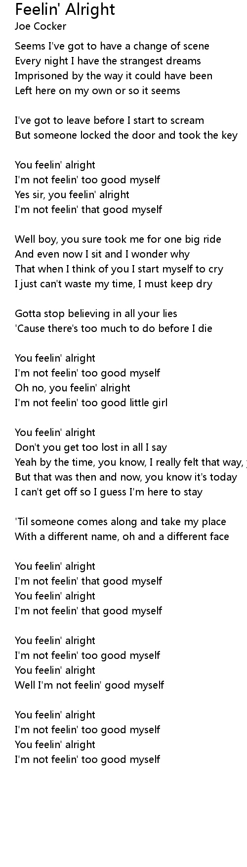 | You feelin' alright | |