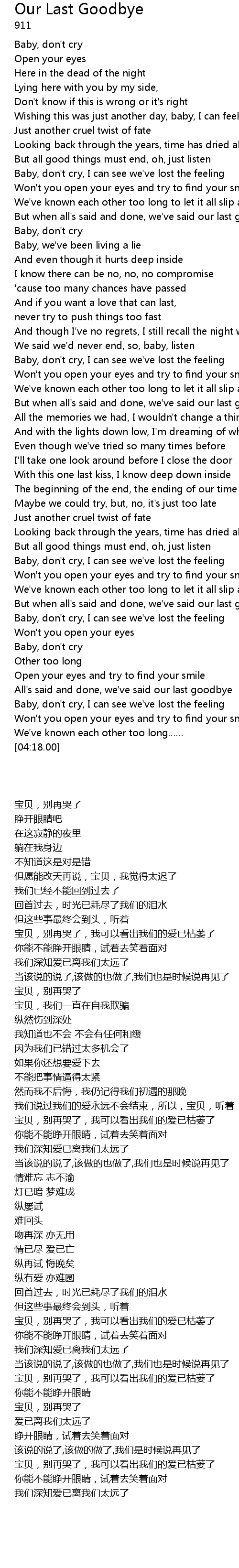 | [04:03.40] | Baby, don' t cry, I can see we' ve lost the feeling |