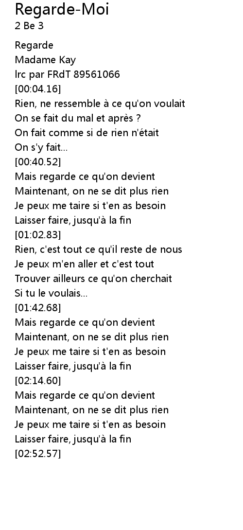 | [00:41.66] | Mais regarde ce qu'on devient |