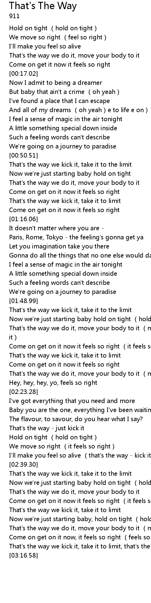 | [03:01.15] | Now we're just starting baby, hold on tight (hold on tight) |