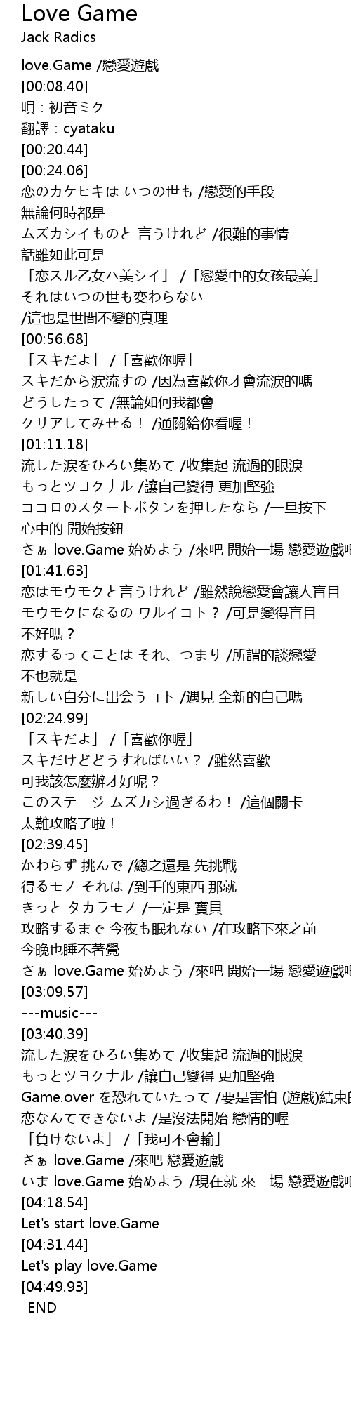 | [00:02.22] | love.Game /戀愛遊戲 |