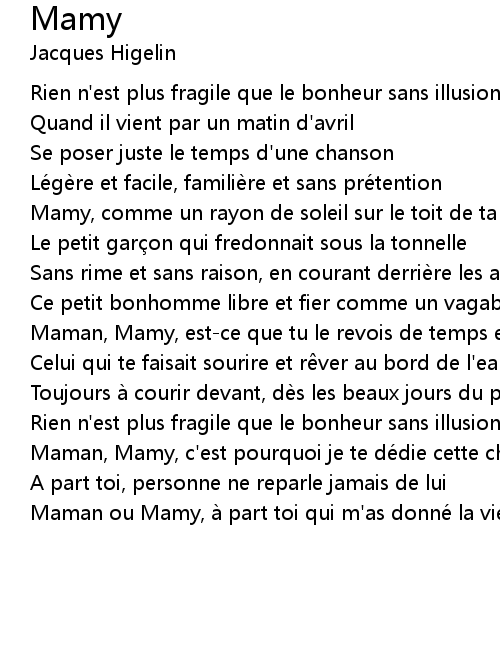| Maman, Mamy, c' est pourquoi je te de die cette chanson | |