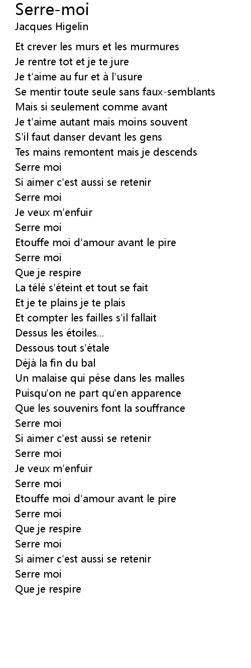 | [02:56.00] | Etouffe moi d'amour avant le pire |