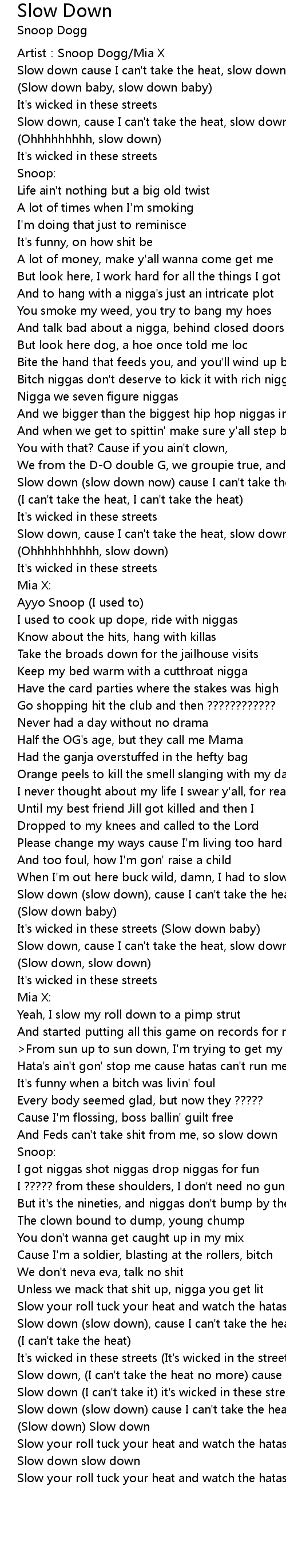 | Slow down, I can' t take the heat no more cause I can' t take the heat | |